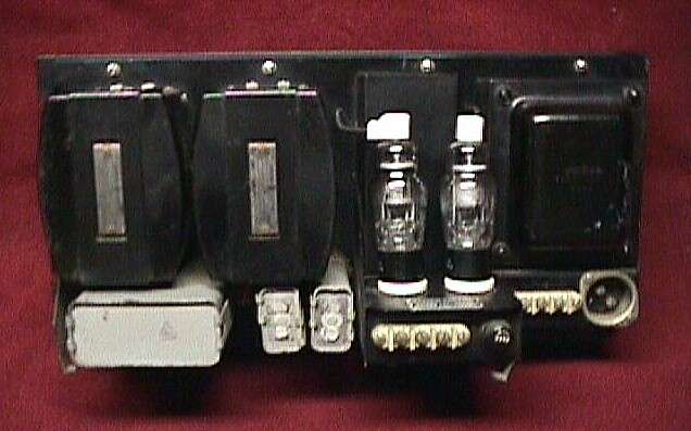 The first picture shows only the front control plate area as the remaining panel is blank rack panel. In the rear picture notice the size of the 10 henry chokes, on the upper left, in comparision to the 816 rectifiers.