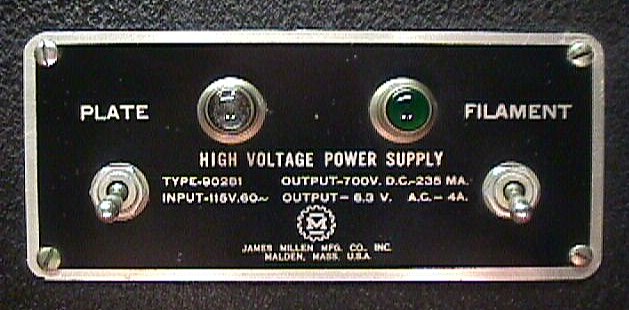 The Millen 90281 High Voltage Power Supply has a DC output of 700 volts at a maximum current of 250mA and a 6.3 VAC 4A filament voltage. Designed as a general purpose power supply it is an excellent power source for both the 90800 and 90801 transmitters HV and filament requirements.